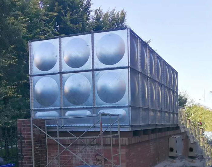 鍍鋅鋼板水箱是按照02S101制造生產(chǎn)的新型裝配式水箱,采用Q235鋼板,沖壓形成1000*000和1000*500 500*500的標(biāo)準(zhǔn)塊,周邊鉆孔,經(jīng)鍍鋅處理,現(xiàn)場進(jìn)行組裝,組裝時(shí)標(biāo)準(zhǔn)塊之間硅膠密封,螺栓連接。該水箱制造、安裝均不受土建施工影響,不用焊接設(shè)備,表面采用熱鋅防腐處理,美觀,以免水質(zhì)二次污染,并符合建筑產(chǎn)品標(biāo)準(zhǔn)化、系列化、工廠化要求。